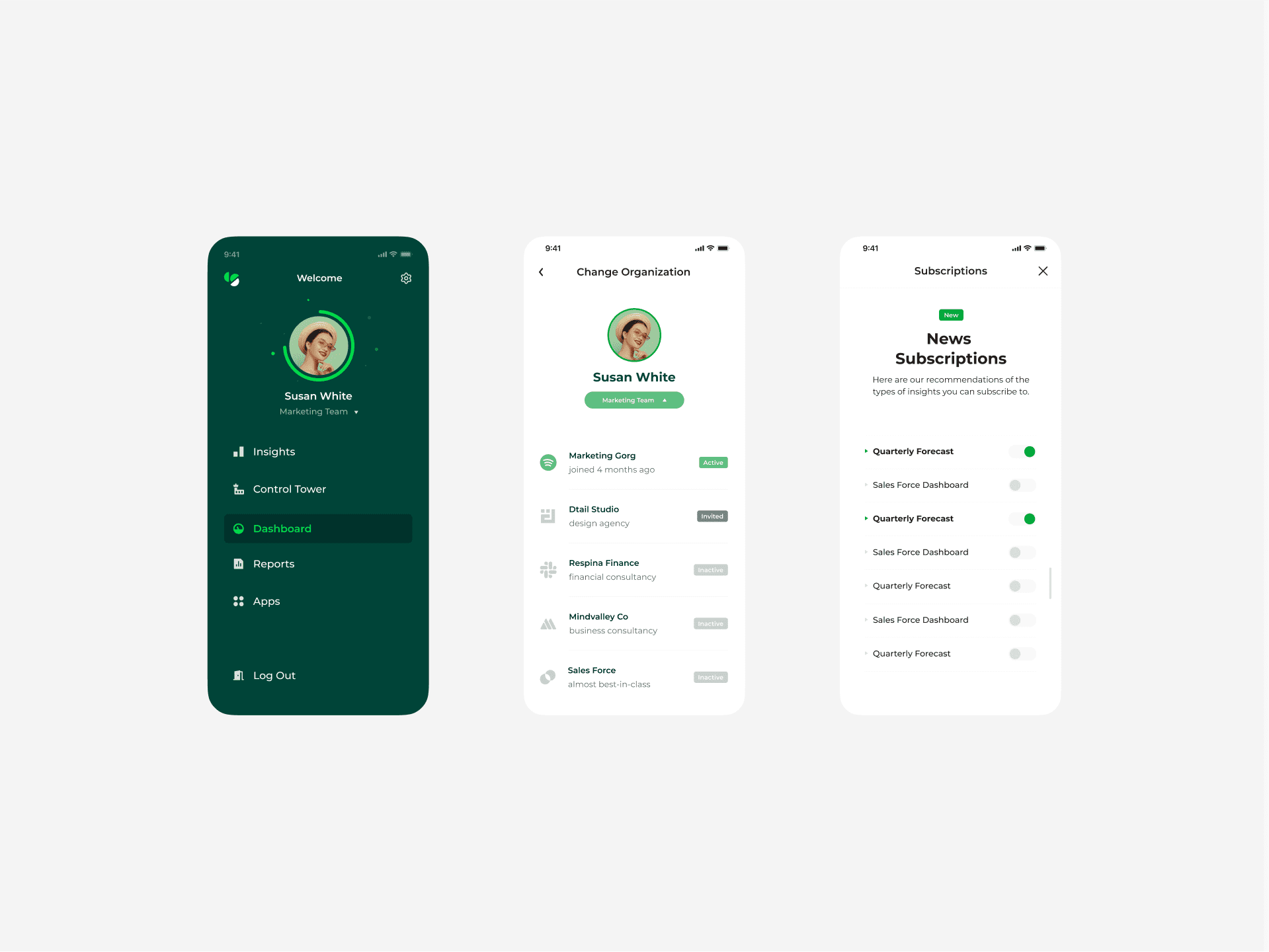With the colour wheel spectrum of direct competitors identified during the initial stage in mind, we decided to go forward with shades of green which, alongside the AI-themed graphic elements, would differentiate the brand from its direct competitors and set its desired friendly brand tone.